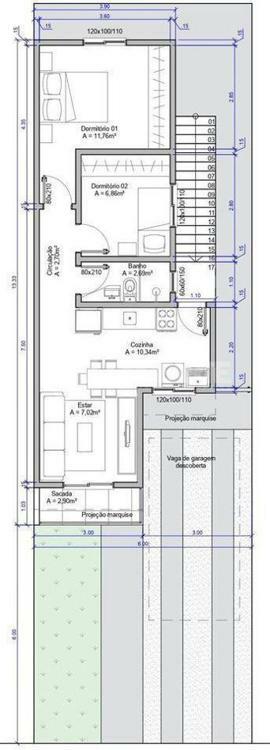 Área Total do Terreno 180,00m² : 6,00m de largura X 30,00m de comprimento.