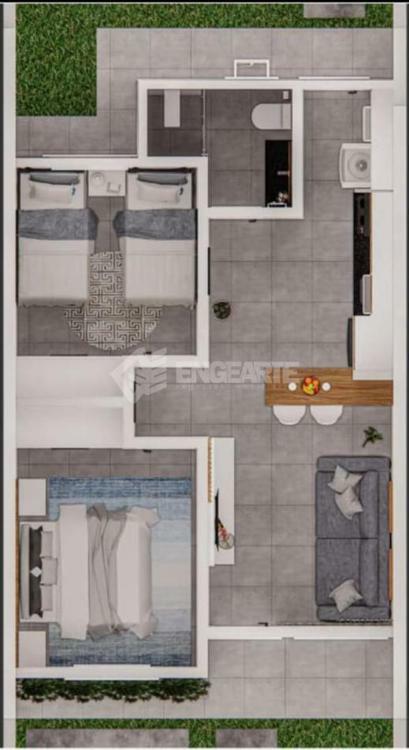 Sala, Cozinha, Banheiro Social, Lavanderia e 01 Vaga de estacionamento